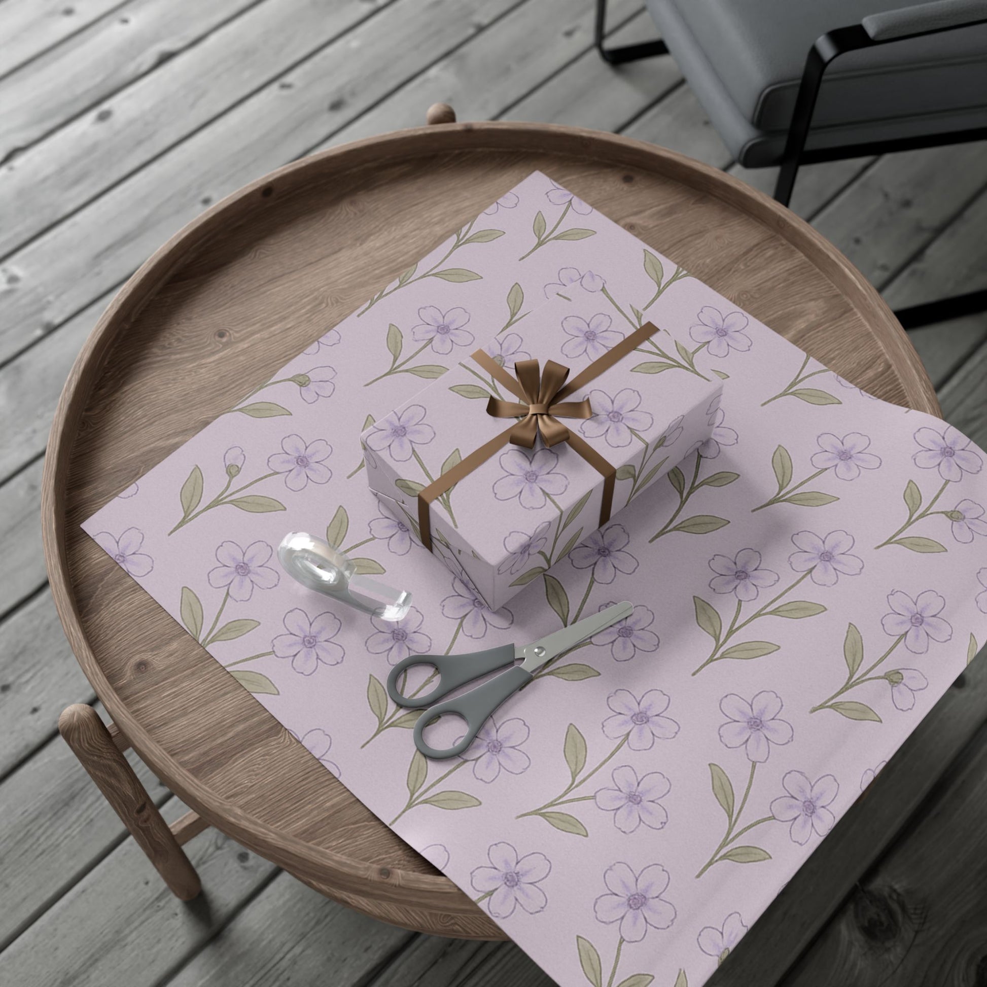 Soft lavender blooms drift across a pale mauve background, turning ordinary parcels into gentle moments of delight. This lightweight, durable wrap folds cleanly around boxes and envelopes, with water- and scratch-resistant printing that keeps the floral pattern crisp. Choose satin for a subtle sheen that catches light, or matte for a quiet, modern finish. Recyclable and printed with water-based GreenGuard-certified inks, the paper feels thoughtful from first touch to final reveal—great for handwritten notes, small handcrafted goods, or heartfelt celebrations where details matter.
