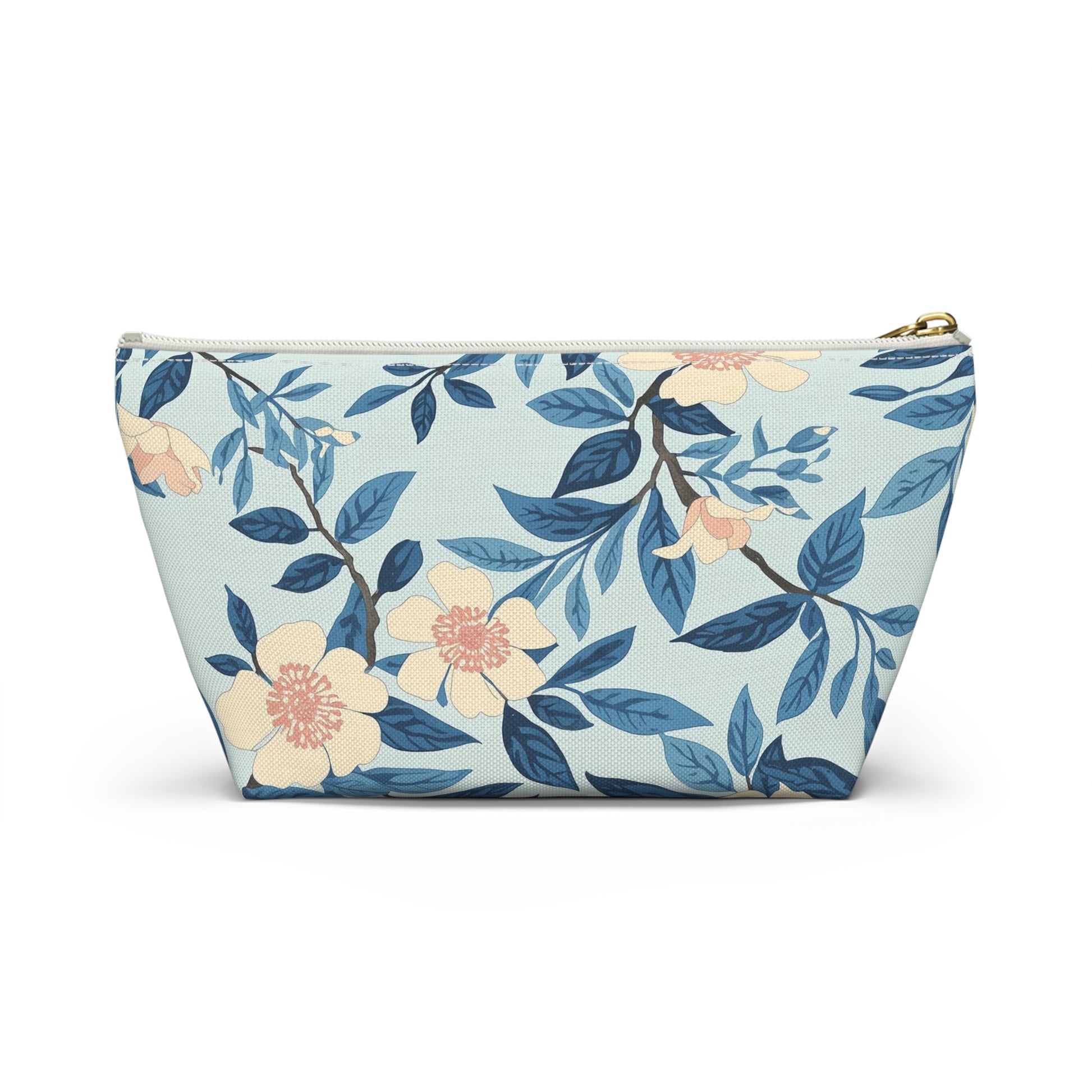 Peace Floral Accessory Pouch – Blue Botanical Makeup Bag