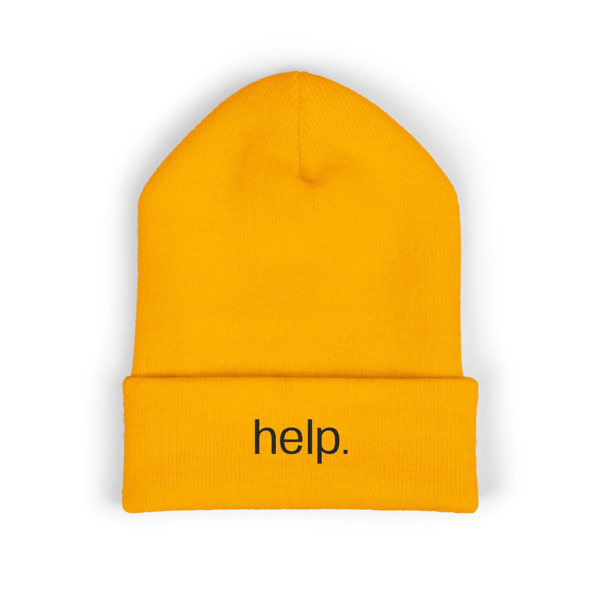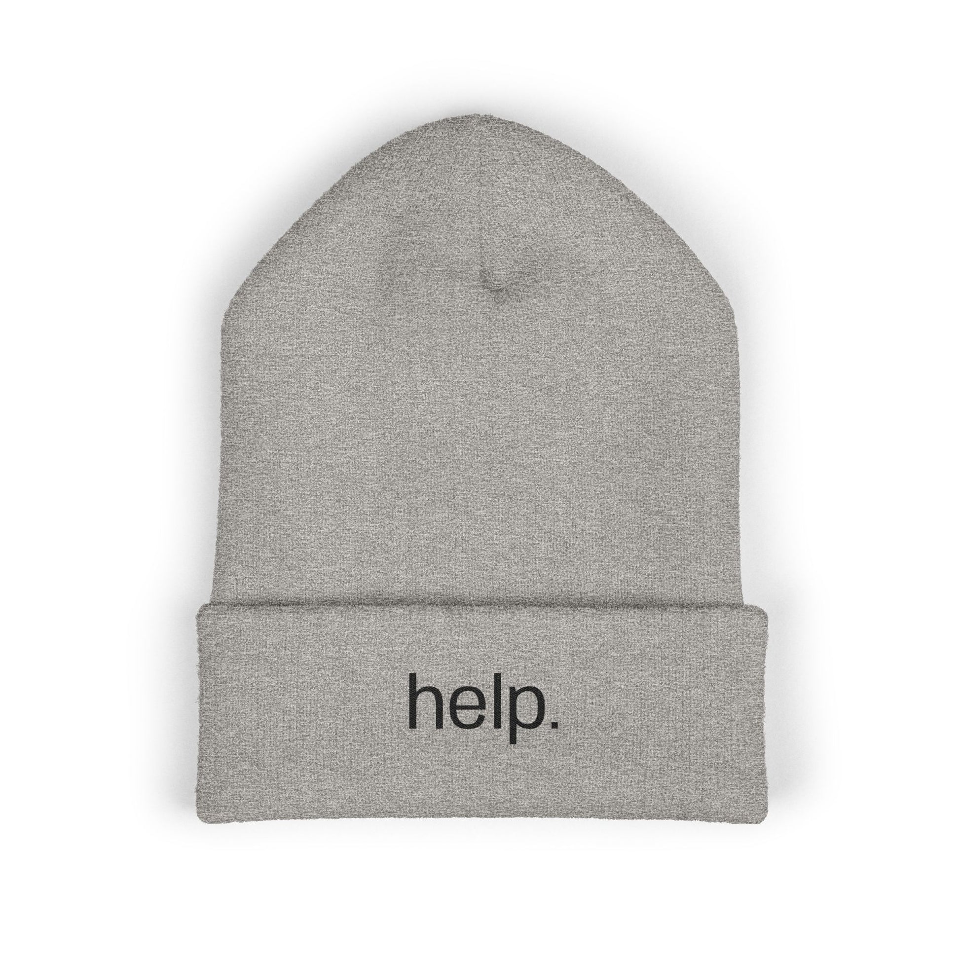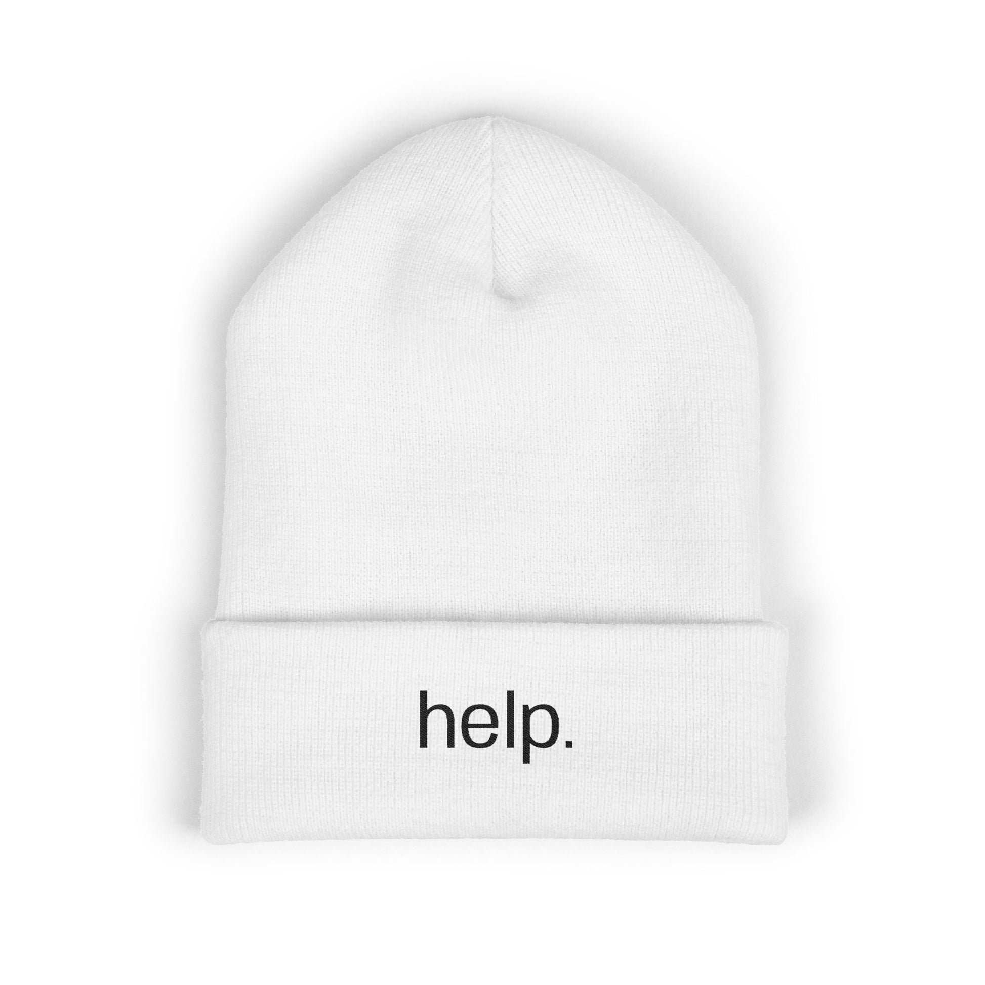 Embroidered "help." Cuffed Beanie - Minimalist Winter Hat